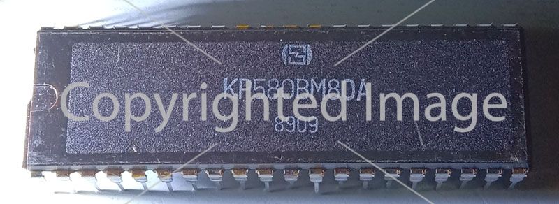 Функциональный аналог микропроцессора Intel 8080A (1974 год). Также существовал более ранний вариант микропроцессора К580ИК80, выпускавшийся в 48-выводном корпусе.